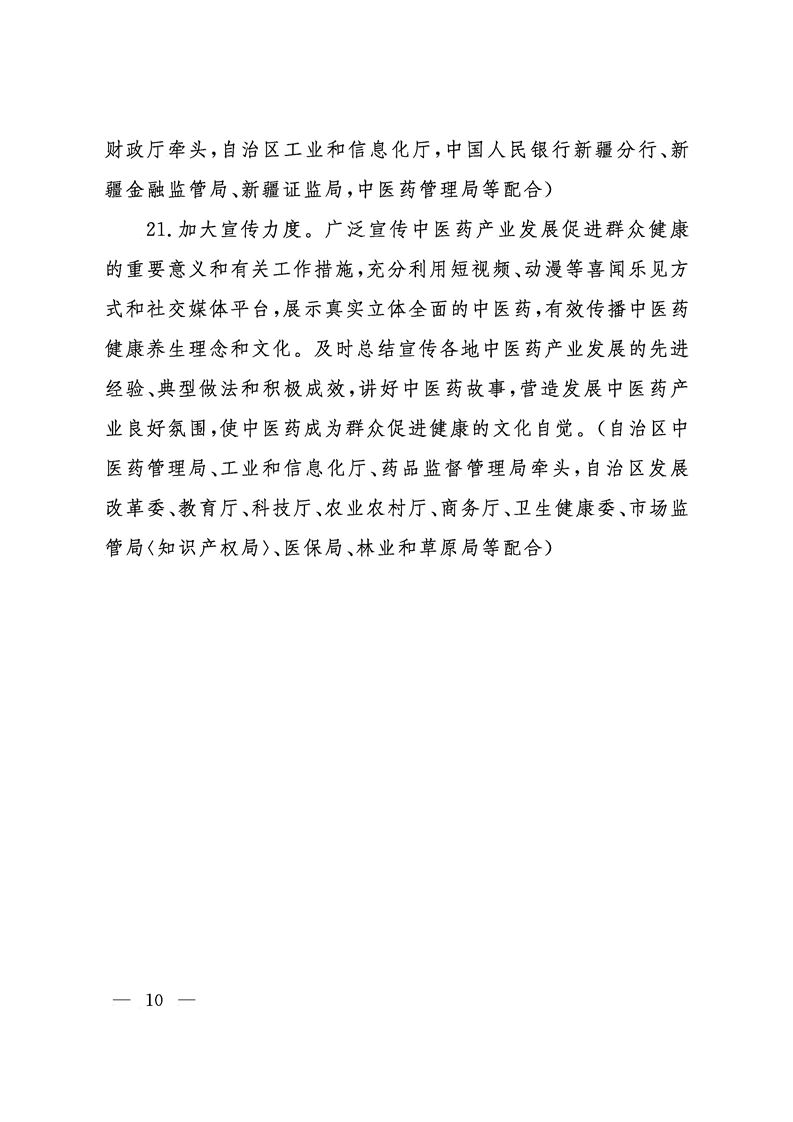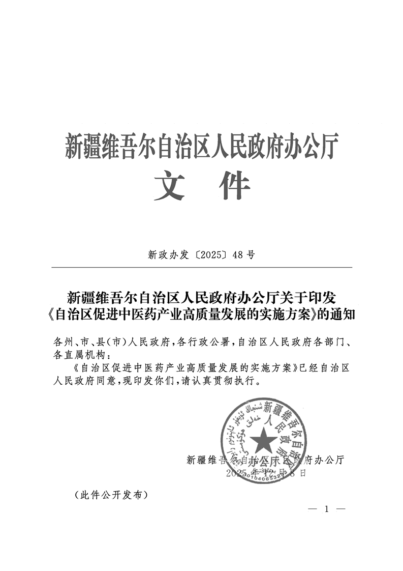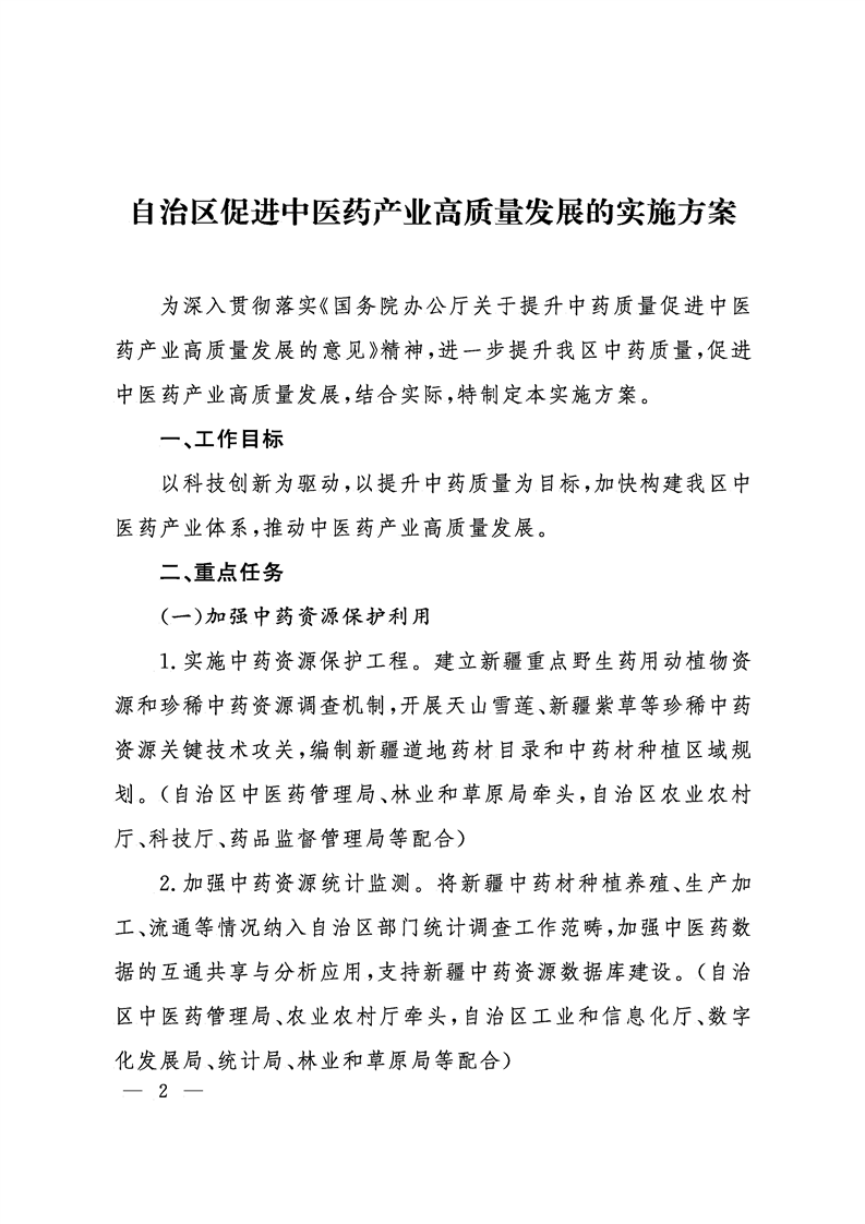 新疆维吾尔自治区人民政府办公厅关于印发《自治区促进中医药产业高质量发展的实施方案》的通知