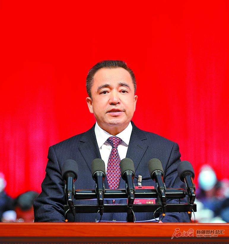 各位代表!新时代的号角已经吹响,向“第二个百年”奋斗目标进军的新征程已经开启。让我们更加紧密地团结在以习近平同志为核心的党中央周围,在自治区党委坚强领导下,高举中国特色社会主义伟大旗帜,以习近平新时代中国特色社会主义思想为指导,完整准确贯彻新时代党的治疆方略,牢牢扭住社会稳定和长治久安总目标,坚持依法治疆、团结稳疆、文化润疆、富民兴疆、长期建疆,不忘初心、牢记使命,脚踏实地、勇于担当,齐心协力、开拓进取,努力完成全年目标任务,以优异成绩迎接党的二十大胜利召开,为建设团结和谐、繁荣富裕、文明进步、安居乐业、生态良好的新时代中国特色社会主义新疆而不懈奋斗,奋力谱写中华民族伟大复兴中国梦的新疆篇章!
