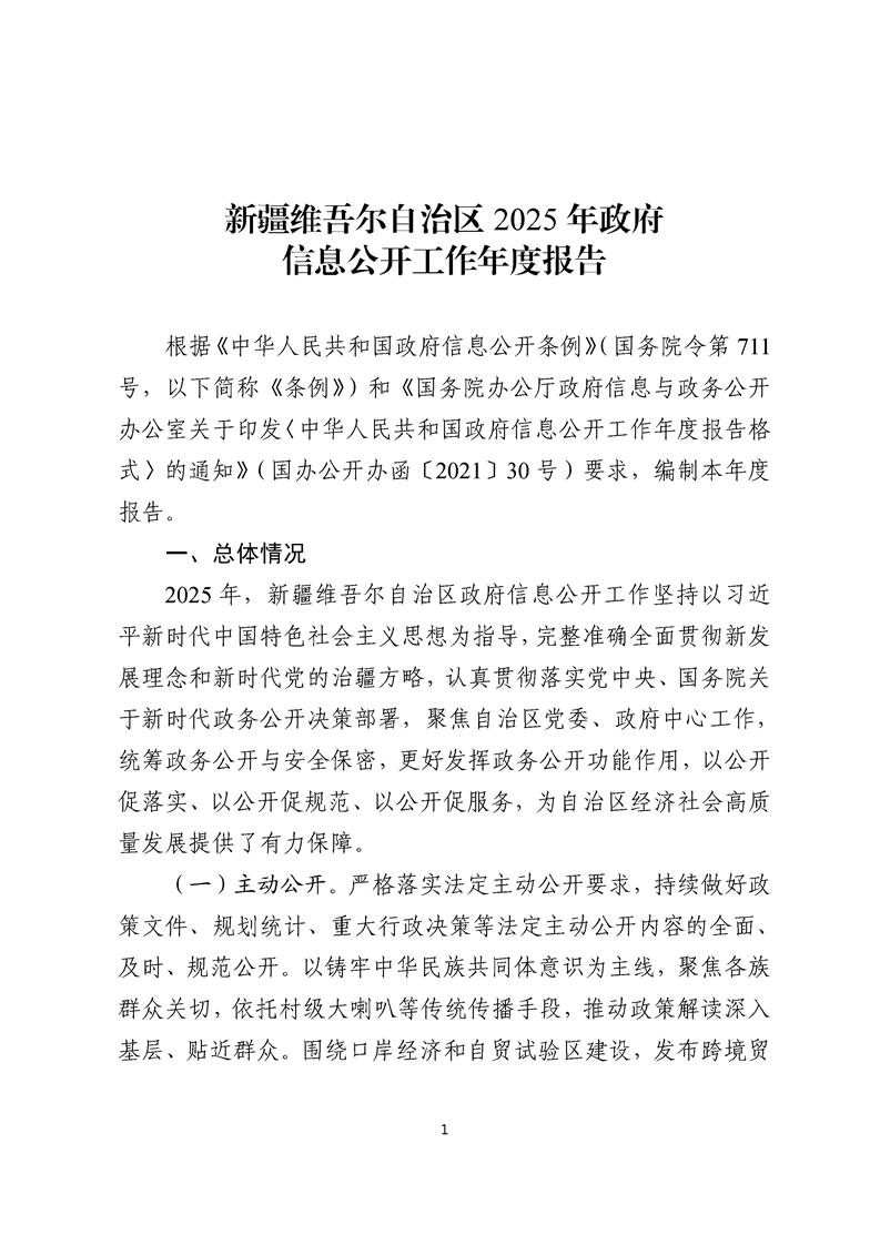 新疆维吾尔自治区2025年政府信息公开工作年度报告