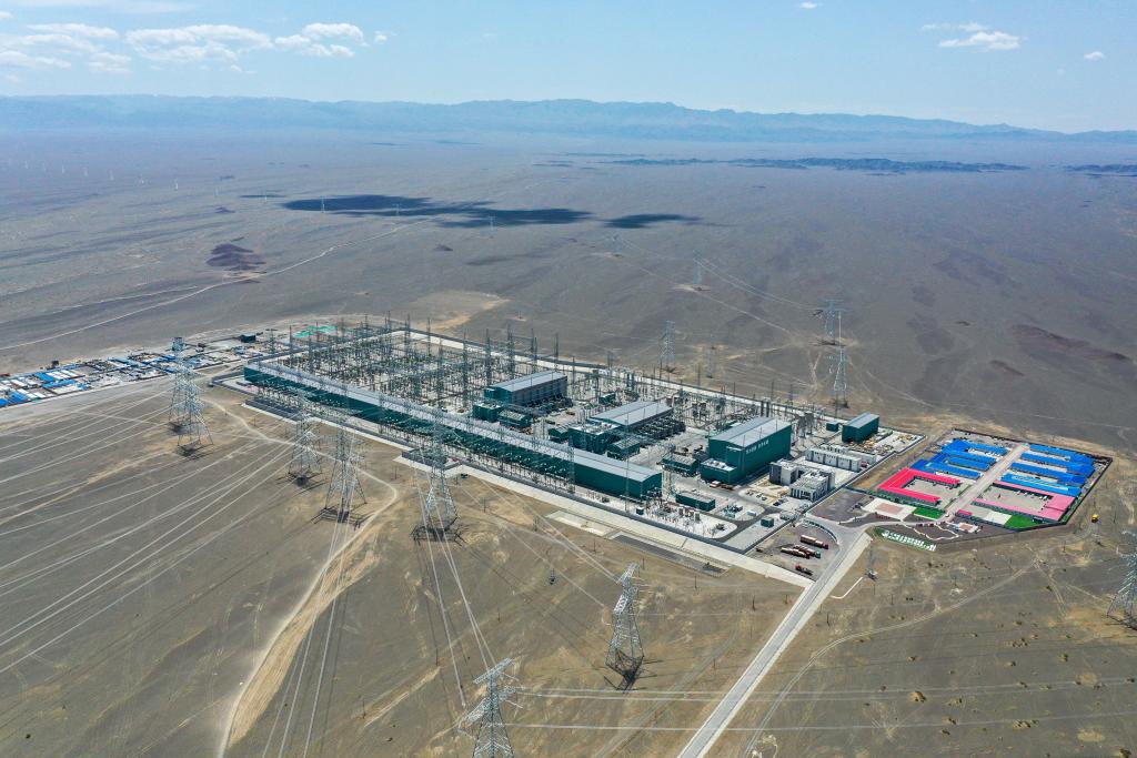这是2025年6月10日拍摄的哈密—重庆±800千伏特高压直流输电工程新疆送端站——巴里坤换流站(无人机照片)。新华社记者 丁磊 摄