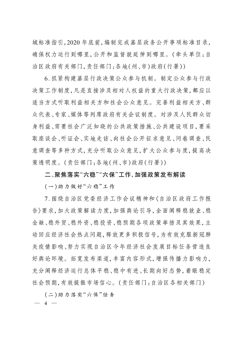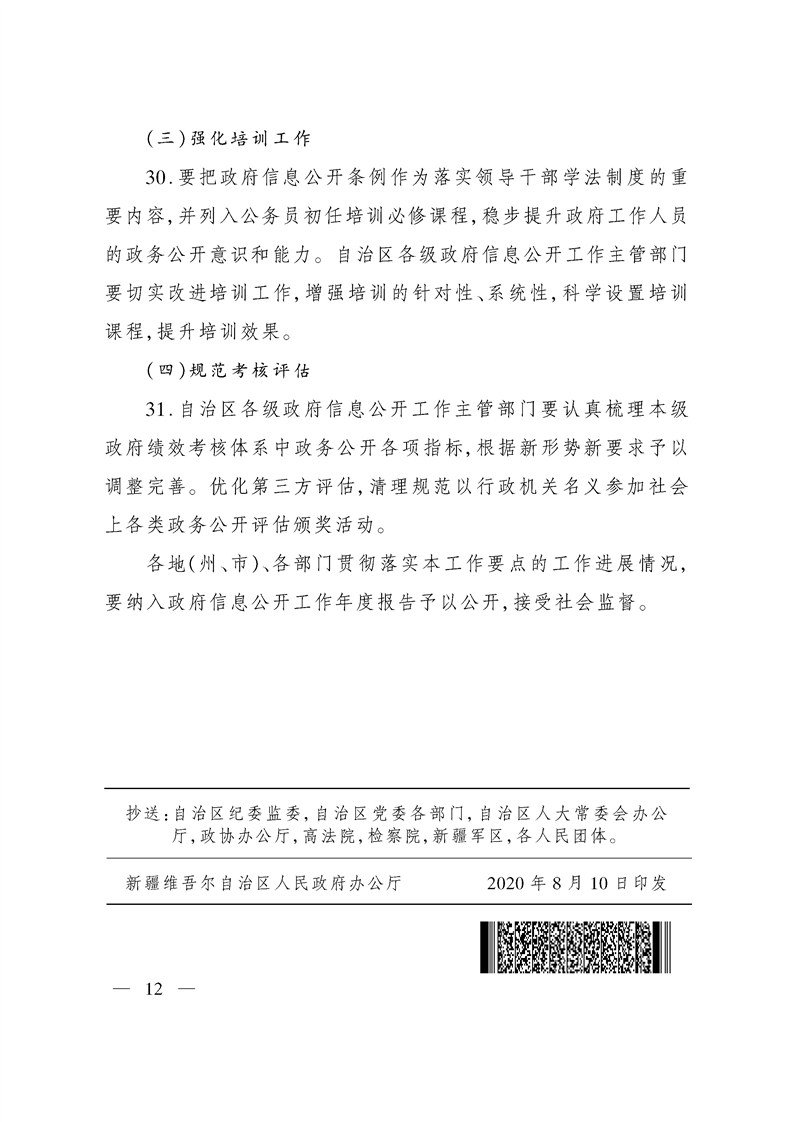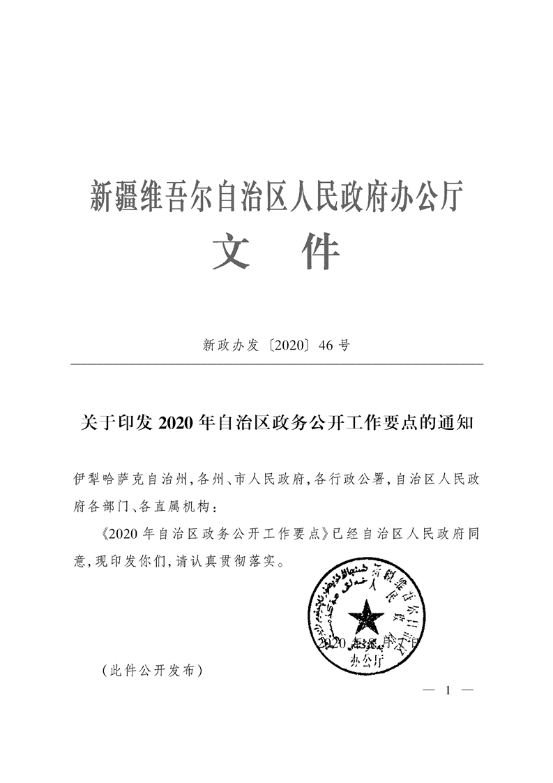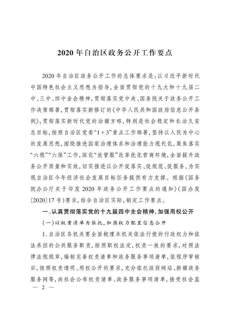 关于印发2020年自治区政务公开工作要点的通知