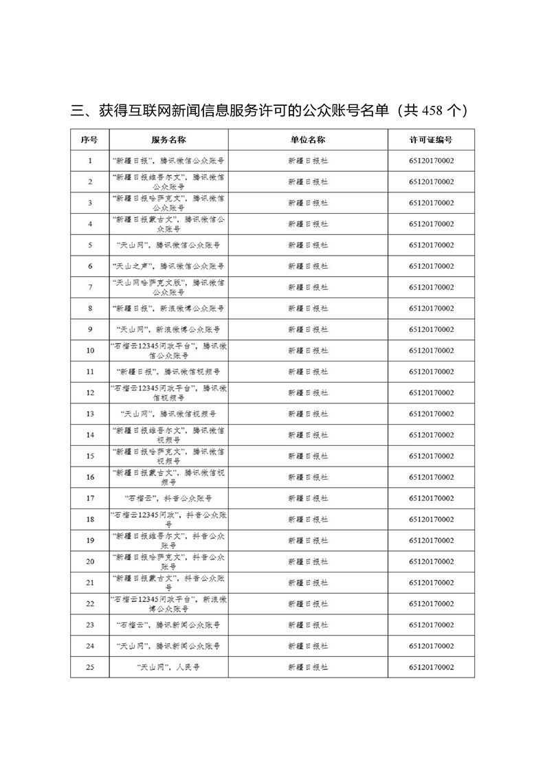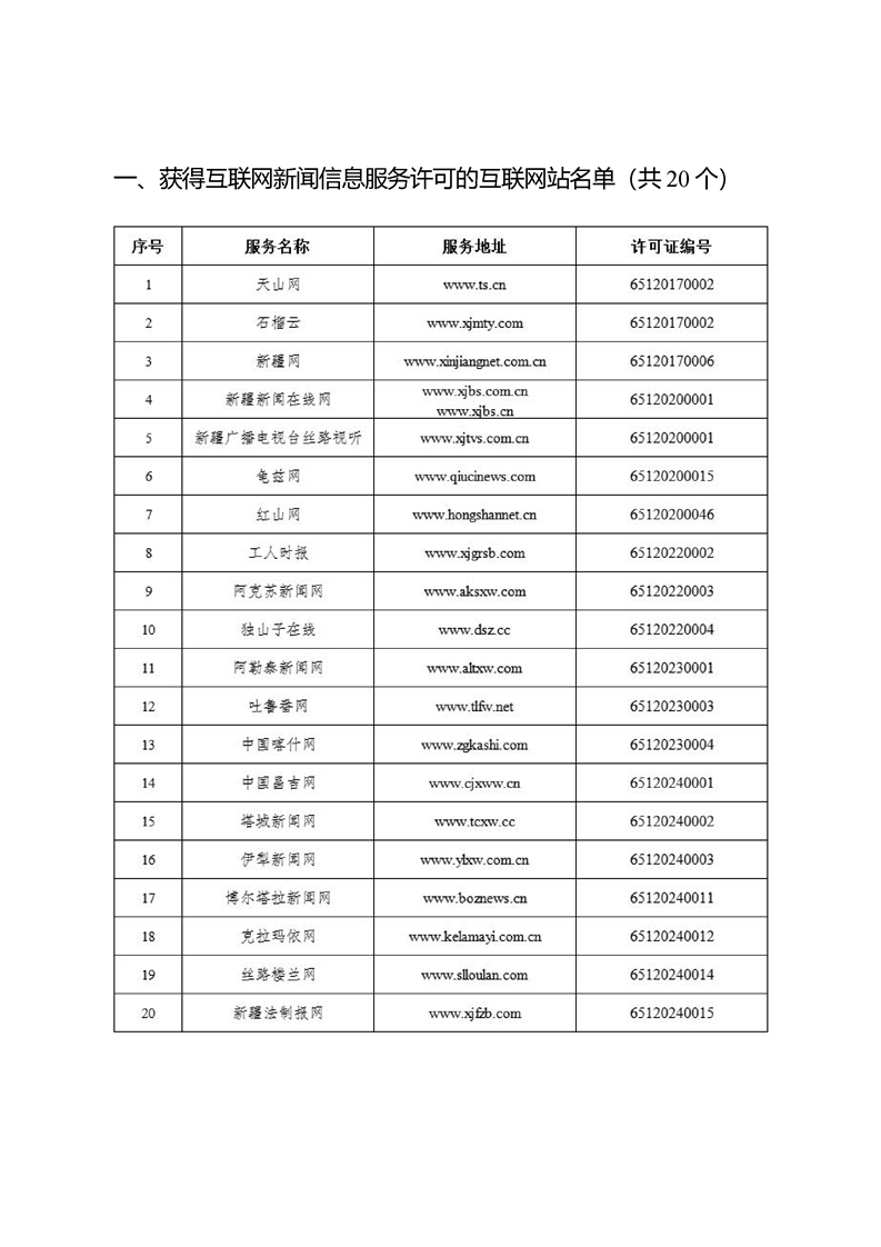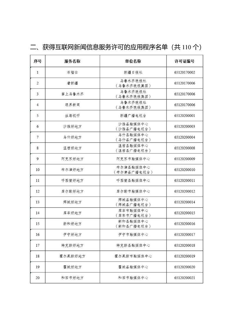 《规定》实施以来,新疆维吾尔自治区互联网信息办公室认真组织开展互联网新闻信息服务许可审批工作。现将新疆维吾尔自治区互联网新闻信息服务单位相关许可信息予以公开,包括:互联网站20个,应用程序110个,公众账号458个,其他1个,共计589个服务项。