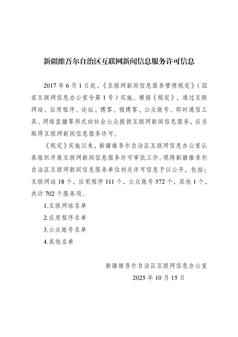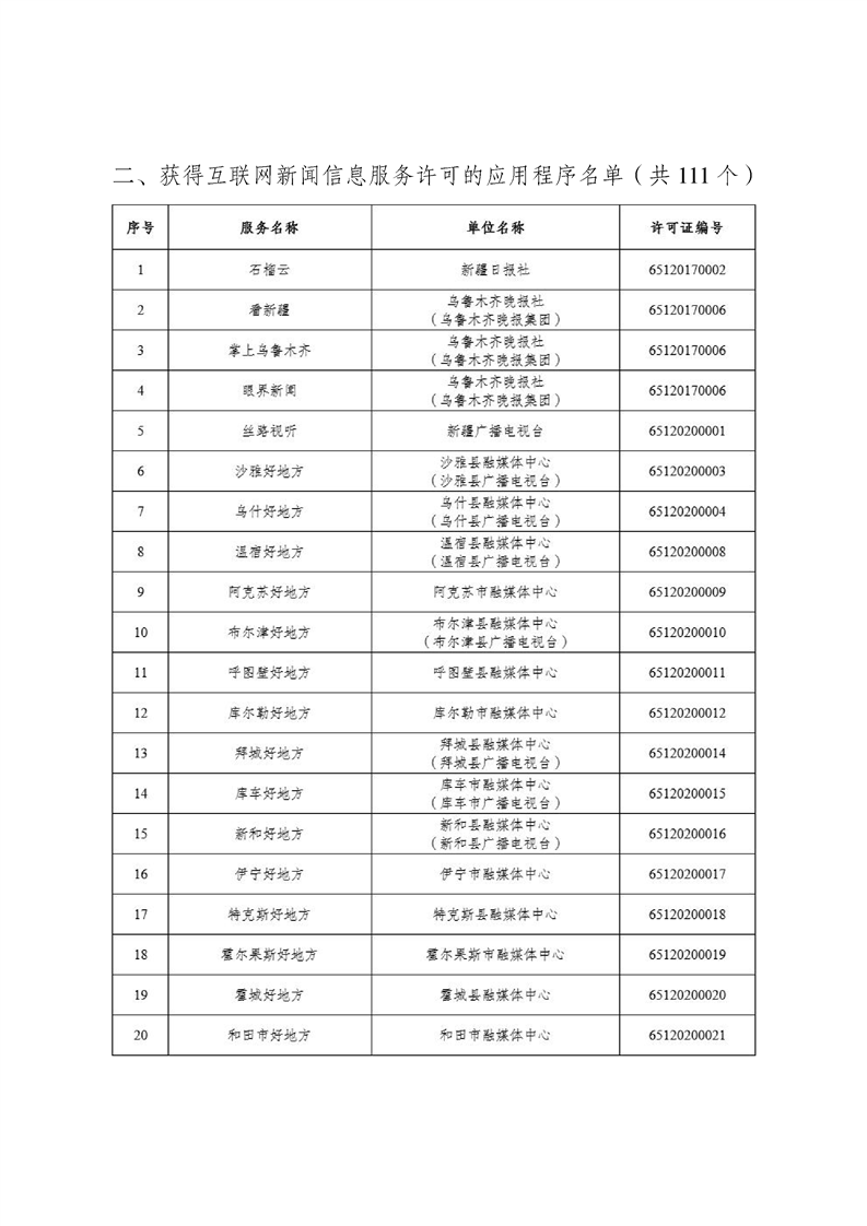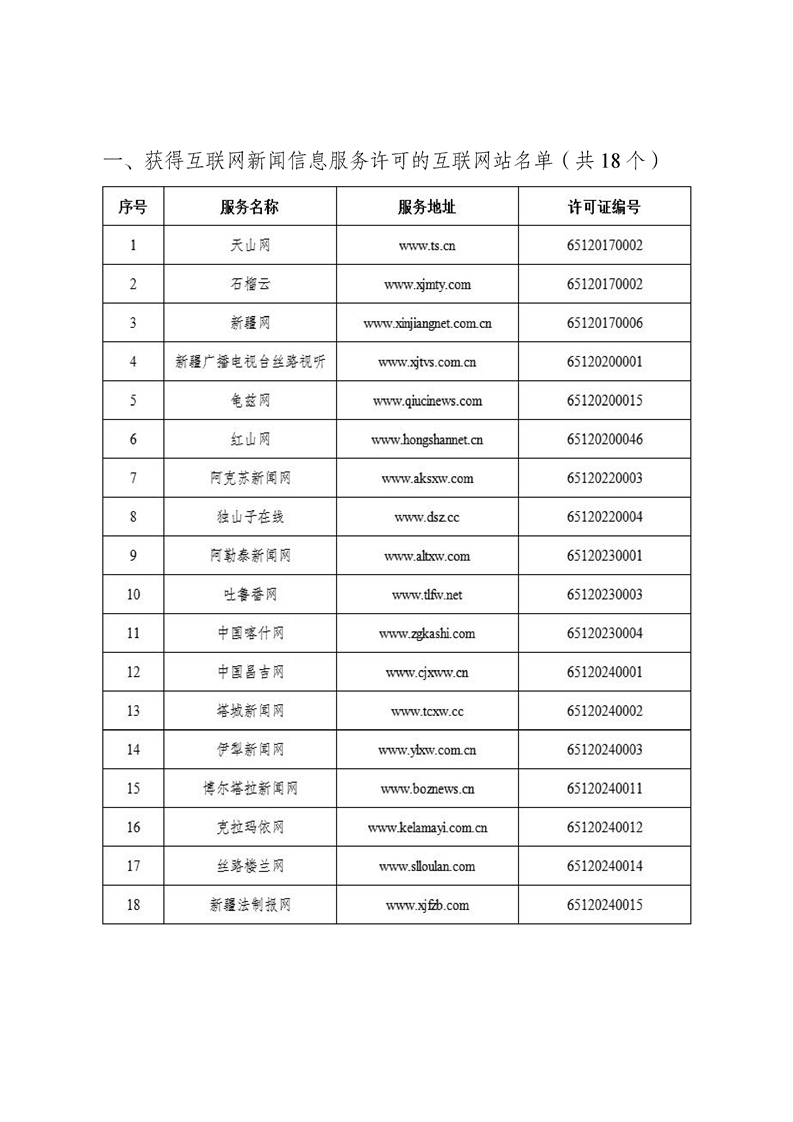 新疆维吾尔自治区互联网新闻信息服务许可信息