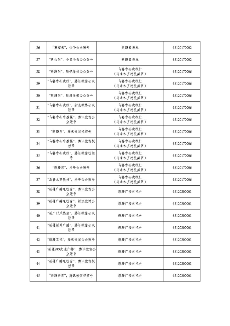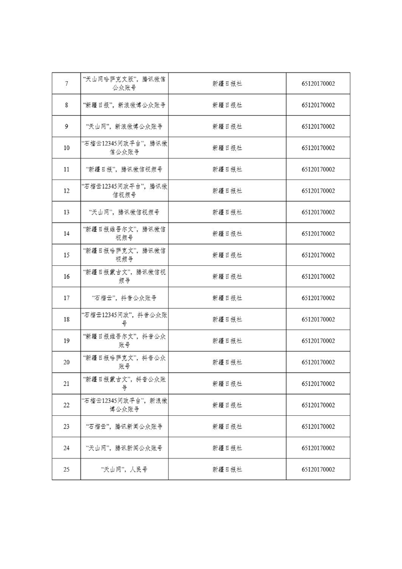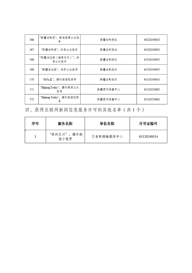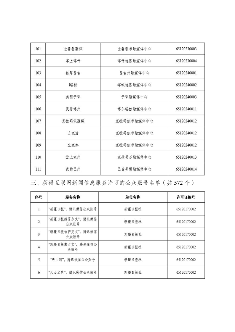 新疆维吾尔自治区互联网新闻信息服务许可信息
