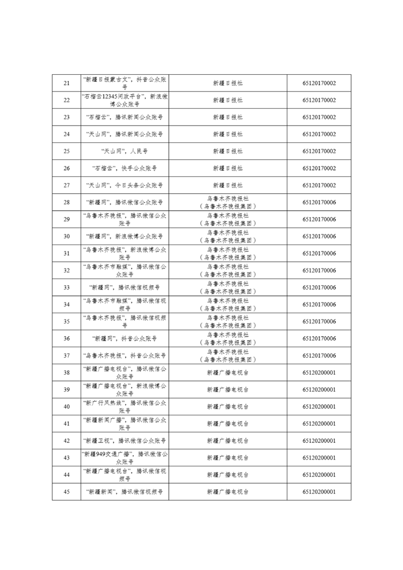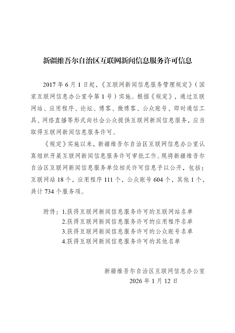 新疆维吾尔自治区互联网新闻信息服务许可信息