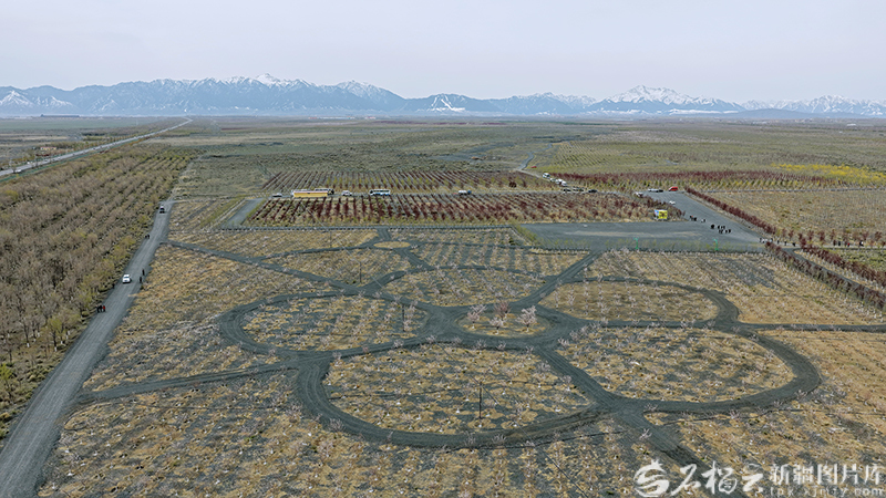 4月21日,俯瞰乌鲁木齐县乌板乌水公路两侧生态防护林建设工程现场。天山网-新疆日报记者 周鹏 摄