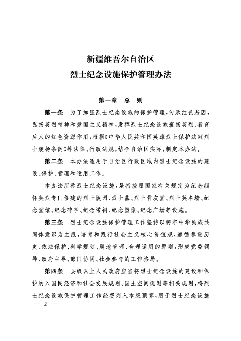 新疆维吾尔自治区烈士纪念设施保护管理办法
